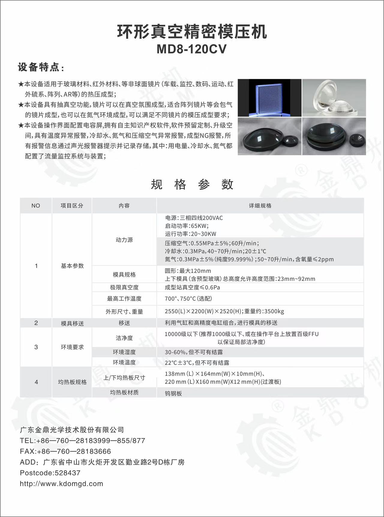 ★本設(shè)備適用于玻璃材料、紅外材料等非球面鏡片(車載、監(jiān)控、數(shù)碼、運(yùn)動(dòng)、紅外硫系、陣列、AR等)的熱壓成型;