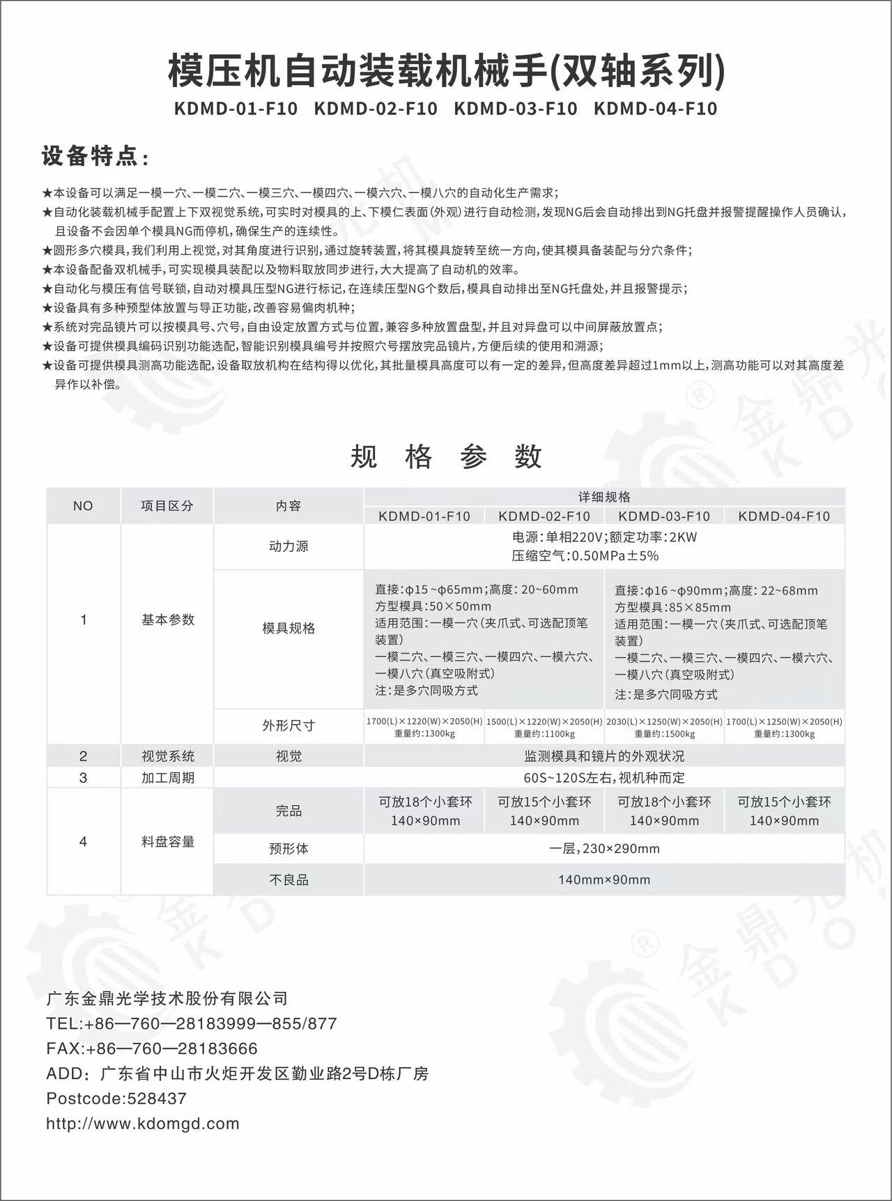 ★本設(shè)備可以滿足一模一穴、一模二穴、一模三穴、一模四穴、一模六穴、一模八穴的自動(dòng)化生產(chǎn)需求;